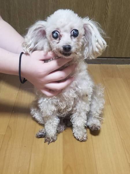 | 特徴(性格など) | 凄く甘えたさんで、人懐っこいわんちゃんです。他のわんちゃんとも仲良くできます。ご飯もよく食べています。 この年齢まで交配に使われていたので、体がボロボロの状態です。詳しくはお問い合わせ頂ければご説明させて頂きます。 小さいゲージに入れられてずっと生活していたので、足の変形がありますが、日常生活には特に問題ありません。 |