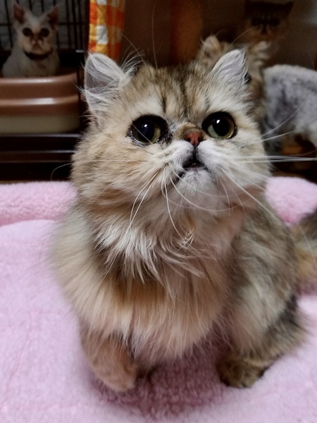 | 特徴(性格など) | 種類:ペルシャ(チンチラゴールデン) 推定生年月日:2019年ごろ しっぽ:長くてふわふわ 黒目がちでくりくりの大きなお目目に、ふわふわ毛並みの美少女さん。 その可愛さから、某アイドルグループより、不動の絶対エースのお名前をつけさせていただきました。 おっとりと優雅な物腰ですが、実は好奇心旺盛で遊ぶのも大好き。 人も大好きで、一度心を許すととーーっても甘えんぼうさんになります。 劣悪な環境で育った中では、比較的健康状態がよかった子ですが、時々涙目になることがあります。 またペルシャ種は毎日のブラッシングが欠かせません。 日々、丁寧なお世話ができる方にぜひお迎えいただきたいと思います。 ☆不妊去勢手術済 ☆ワクチン済 ☆ノミダニ取り済 ☆駆虫済 ☆トイレしつけ済 ☆ウイルス検査 エイズ(ー)、白血病(ー) |