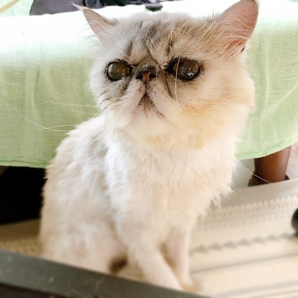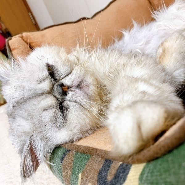 | 特徴(性格など) | 種類:ペルシャ(チンチラシルバー) 生年月日:2012年4月28日 しっぽ:長くてふわふわ 名前は長老ですが、御年8歳のまだまだ現役の男の子です! 非常に柔らかく落ち着いたその佇まいは、 そばにいるだけで誰もがありがたい気持ちになるはずです。 気づくといつも近くにいて、うるうるの瞳で見つめられたら… もう、なでなでせずにはいられません♪ 普段はおっとりマイペースですが、 遊びに夢中になると意外にもアグレッシブ! 見た目に騙されるでないぞ。 そんなギャップも素敵です! ペルシャ種の中でも特にお鼻が低い長老は、 大好きなウェットごはんを食べるのにちょっぴり一苦労。 お皿の形を工夫したり、少しの介助をしてあげると食べやすくなります。 自然と甲斐甲斐しくお世話をしてあげたくなる、愛嬌たっぷりの長老と、ぜひ一緒に暮らしませんか? 劣悪な環境からレスキューされたため、猫風邪や真菌の症状がありましたが、現在は改善しております。 #両眼ともに若干の曇りがありますが、日常生活に問題ありません。 #目の調子の悪い時には目薬などが必要ですが、おとなしく目薬させてくれるのでこちらもストレスフリーです◎ #ちなみに、チュールと一緒にお薬をパックンしてくれるので、投薬が必要な場合もお互いストレスなくあげられます。 長毛さんなので、ブラッシングなどケアが必要ですが、落ち着いた性格の長老なので楽しくケアしていただけると思います。 ☆不妊去勢手術済 ☆ワクチン済 ☆ノミダニ取り済 ☆駆虫済 ☆トイレしつけ済 ☆ウイルス検査 エイズ(ー)、白血病(ー) |