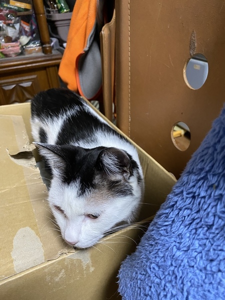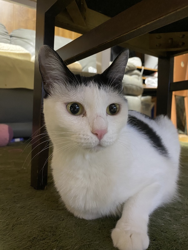 | 特徴(性格など) | 白黒の尻尾長めのチョビジュと呼んでます。 外猫のご飯を食べに来てました。ニャァニャァと良く鳴くし甘えて来てましたので 保護して飼い猫にしました。 甘えるときにはゴロゴロが気持ち良く大きい!! |