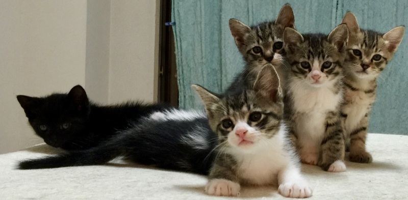 | 里親募集する理由 | 遠目で見つけた茶マダラを放っておけず(サビ=メスなので)、何度目かのトライで捕獲、すぐ避妊手術に連れて行ったのに、オペ室で出産劇に。子供に見えたのに、5チビも出て来て吃驚ポンです。 熊みたいな母猫には、ストレス軽減や病院行きの可能性を減らすため、プレミアムフードを与えています。 心配された育児放棄等は皆無です。 またこのTNR予定がきっかけで、未知の猫が次々トラップに入り、全部不妊化する羽目になりました。 飼えなくても、ヘルプ・オファーできる方からのご連絡もお待ちしています。 |