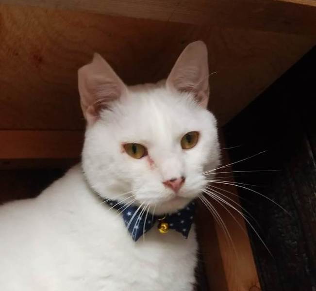 | 特徴(性格など) | 真っ白の毛並がおしゃれなレオ君。 写真撮影のため、即席でつけたネクタイですがよく似合います。 大人しい穏やかな子で、他の猫とも仲良くできます。 多頭飼育で十分なお世話を受けてこなかったので優しい家族に恵まれることを願っています。 健康状態良好 エイズ陰性 白血病陰性 |