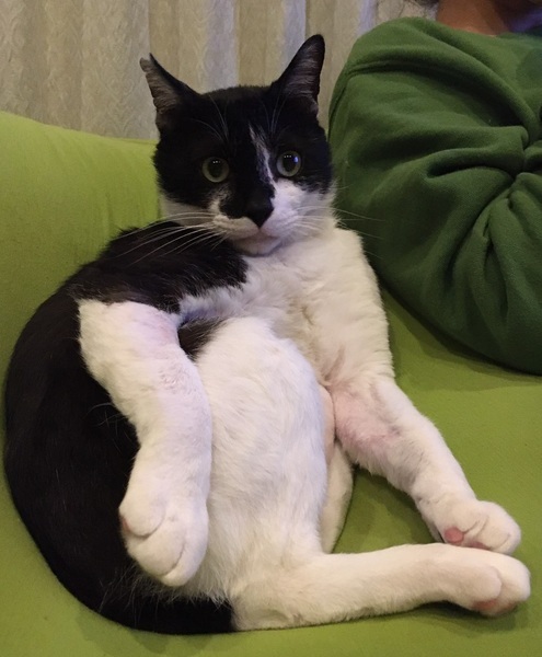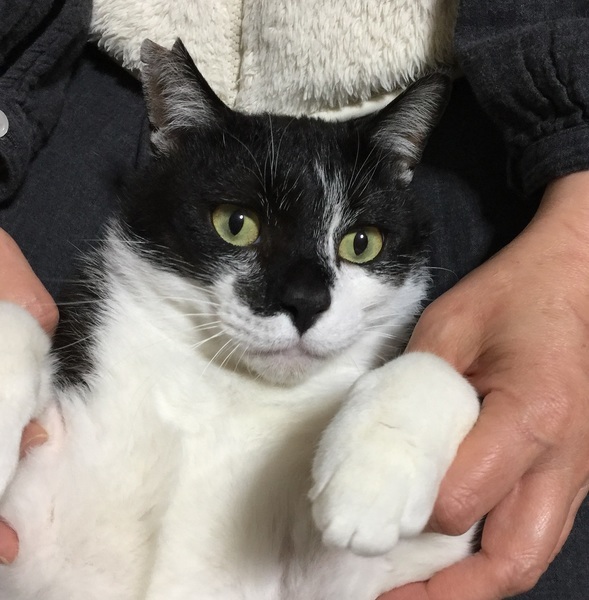 | 特徴(性格など) | *性格* 人間が大好きの構ってちゃんです。 初対面の相手にもスリゴチしてくる甘えん坊くん。 外時代は縄張り意識から喧嘩が多い猫でしたが、家に入ってからは落ち着きました。 預かりさん宅の猫達とも問題なく過ごしています。 外に居た時は人について回っていました。 抱っこで寝てしまったり、爪切りもOKです。 FIV陽性の事もあるので、1頭飼いか、または同じくFIV陽性の温和な猫さんとの同居を希望します。 *特徴* 白黒ハチ割れ。 体重は重いのですが、足が長くガタイが良い!という印象。 尻尾は中くらいの長さです。 鳴き声はとってもカワイイ声です。 体重6.95kg【2020年3月4日測定)固太り気味で筋肉質 去勢手術済(右耳にカット有) 3種混合ワクチン済 FIV(猫エイズ)は陽性 * 未発症です Felv(猫白血病)は陰性です。 健康体で、食欲旺盛です。 |