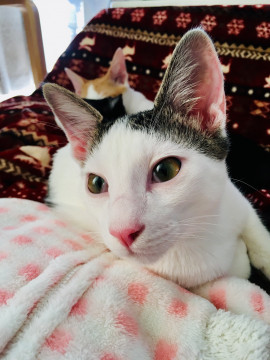 | 特徴(性格など) | 仮名:ミッキーくん(身体に隠れミッキー柄あり) 白黒柄で、前髪ぱっつんの柄が特徴☆ ご飯を食べること、遊ぶことが大好きでマイペースな子です。 人間のことも猫のことも大好きで、ゴロゴロよくいいます。 甘えたい時はお膝に乗ってきて甘えた後そのまま寝てしまいます。 |