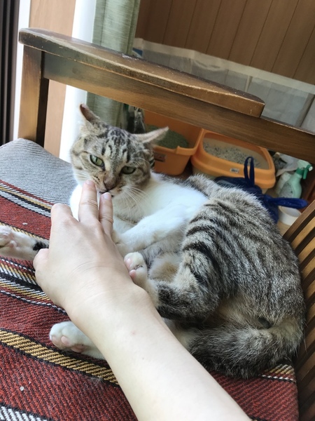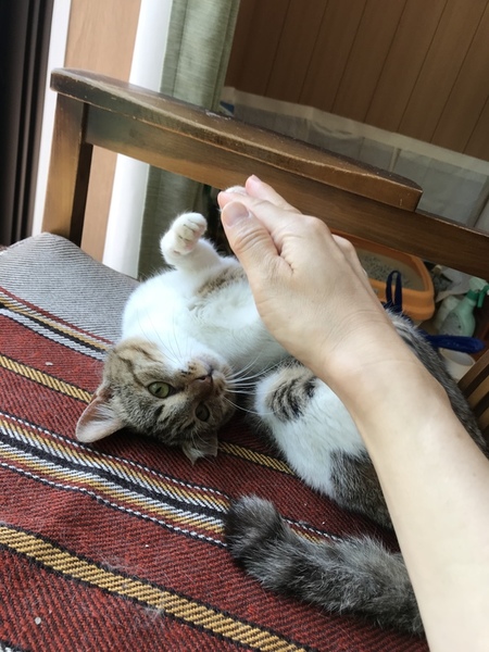 | 特徴(性格など) | 仮名:ハル。キジ白。 保護してすぐに撫でられ、一週間で膝乗りにゃんこになりました。 甘噛みがとっても、上手な子です。 TNR予定だった為、耳カットしてあります。 |