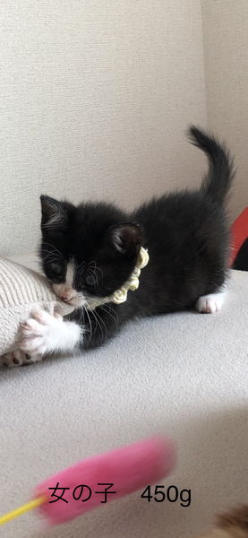 | 特徴(性格など) | 雌…ハチワレの子 450g 雄…黒茶 550g 3匹とも尻尾は長くてまっすぐです。 トイレもきちんと覚えました。 保護した当初はシャーシャー、プッと怒ってばかりでなかなか人慣れしてくれませんでした。 今もシャーと怒りますが、だいぶ慣れてきました。 |