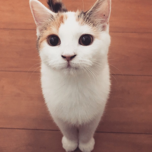 | 特徴(性格など) | スコティッシュフォールド、ホワイト&茶、立ち耳、中毛の女の子です。 おっとりさんでマイペース。いつも小さくニャンニャンおしゃべりしている子です。だっこはあまり好きじゃないけど甘えんぼうです。 |