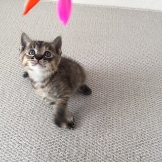 | 特徴(性格など) | とても元気いっぱいでよく食べてよく寝てよく遊びます^_^ 可愛らしく猫じゃらし等をみせるとじゃれてきます。 トイレもきちんと出来てとてもいい子です。 初めは緊張でびっくりしていますが環境の変化に慣れると遊ぶようになりました。 |
