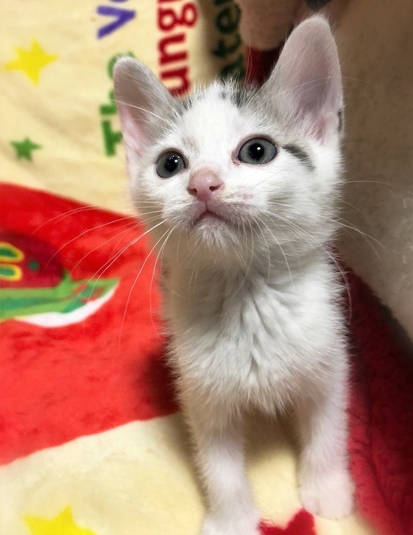 | 特徴(性格など) | 仮名、ラジヲ 月齢約1.5か月の鯖しろ+カギシッポの男の子 好奇心旺盛で甘えん坊 何にでも興味津々で、おもちゃで遊ぶ時も一番にやって来ます。 お腹をマッサージすると、コテンと横になりゴロゴロ~です。 |