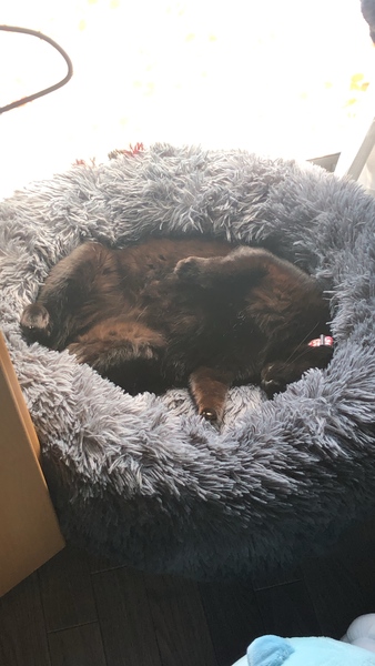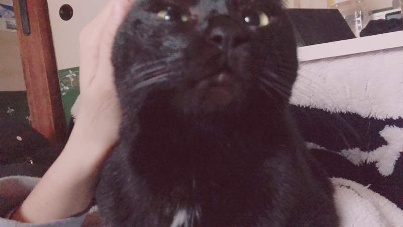 | 特徴(性格など) | 基本真っ黒で首元にツキノワグマみたいな白色があります。 とても甘えん坊でどんな人にも懐きます。キメラって呼ぶと近寄ってきて甘えてきます 寝る時はお腹の上に乗ってきたり足元にいたりと大変甘えん坊です。 コード噛んだりもしません。 爪とぎがちゃんとあれば壁も引っ掻きません。 ワクチンは接種日を忘れてしまい不明にしております。 完全室内飼いでした。 遊ぶの大好きです。 何しても怒ったりしません(しっぽ掴んだりお腹撫でたりしても大丈夫です) |
