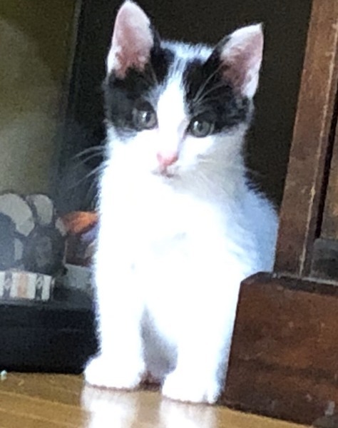 | 特徴(性格など) | ●猫の種類 白黒ハチワレ(尾長) 背中の模様が可愛いハート型です。 ●猫の性別・年齢 オス 5月18日現在 生後1ヶ月半くらい ●健康状態 風邪を引いていたようなので保護してすぐに動物病院に連れて行って お薬をもらってきました。 元気も食欲もありお薬も上手に飲んでおり、便もキレイです。 ノミ・ダニ駆除済み トイレしつけ済み。 ●現在のようすなど 元気に走り回ってます。 人懐っこい性格で抱くとゴロゴロ鳴らします。 爪切りも全く抵抗無く出来ます。 |