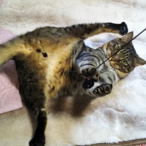 | 特徴(性格など) | 小さい頃に里子に出たのですが、びびりで人馴れに時間がかかるため戻されてしまいました。体は大きめなのに気が弱くて怖がりです。人とはまだ少し距離がありますが、鼻ツンしたり、おもちゃで遊んだりできます。おやつも手から食べます。心を開くまでのんびりお付き合いいただける方との出会いをお待ちしています。猫は大好きでどんな猫とも仲良くしたがり、ストーカーのように付きまといます笑 | ||