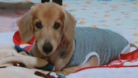 | 特徴(性格など) | ■特徴(仮の名前:陽(ひなた) Mダックス♂推定13~15歳 体重9キロ(要ダイエット) ■性格・暮らし ・人が好きで甘えん坊です。 ・フードは選り好みがあります。 ・おトイレは外派です。 ・散歩はゆっくり歩きます。 ・人の手を怖がる時があります。 ■今までに行った医療行為 ・血液検査 ・フィラリア抗原検査(-) ・混合ワクチン ・去勢手術 |
