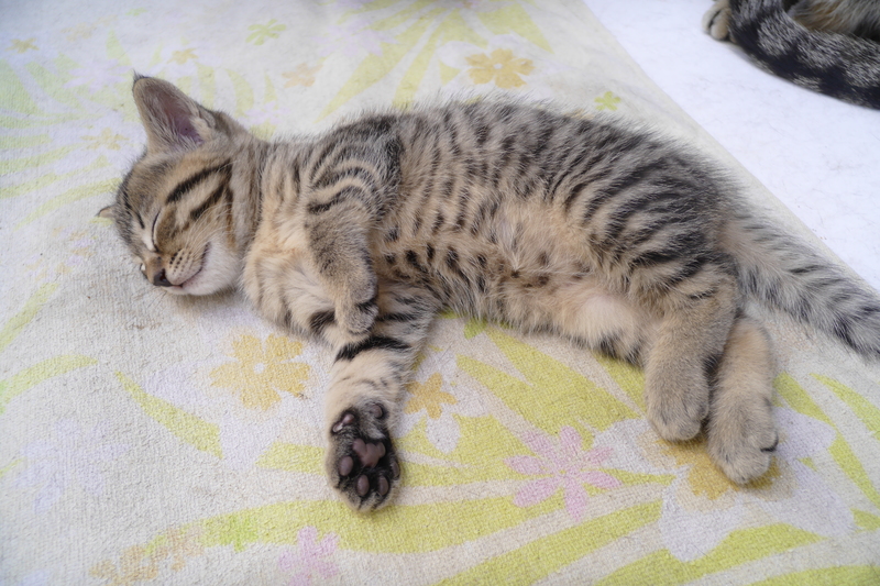 | 特徴(性格など) | 母猫が大事に育てているので健康状態は良さそうです (子猫が1匹の為ミルクが飲み放題なので太り気味かも) トイレ学習済み カリカリも食べています |