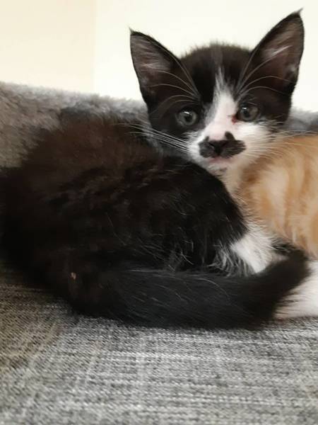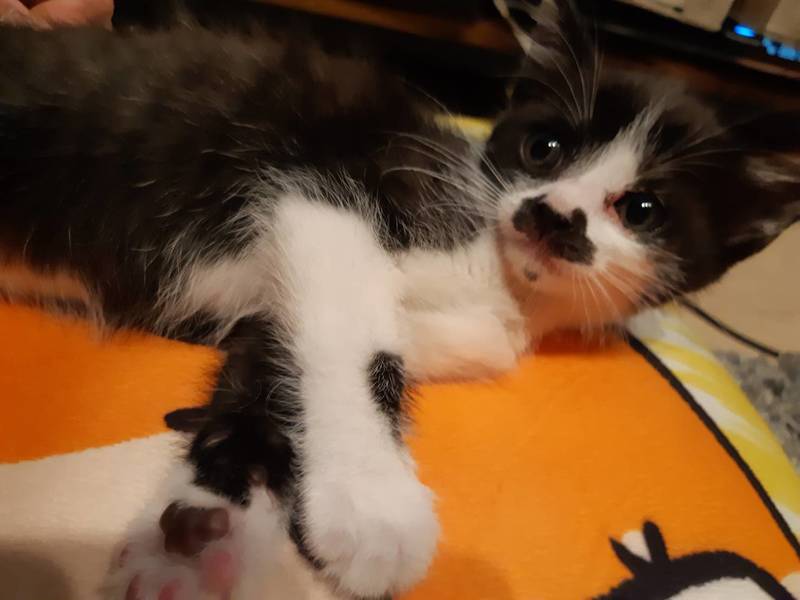 | 特徴(性格など) | 白黒の女の子でお腹が白く背中が黒です。黒の方が多いです。鼻の模様と口の下のホクロが特徴の可愛い女の子です。 | ||