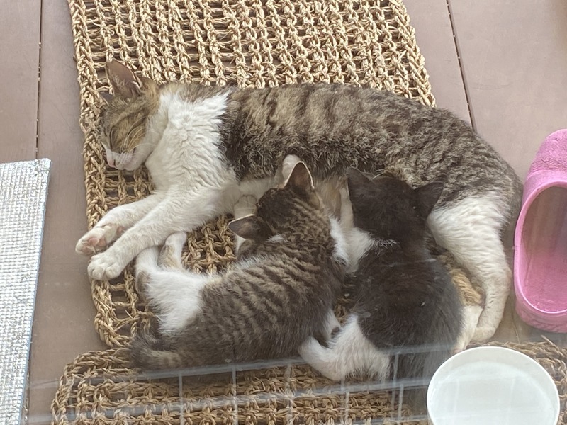 | 里親募集する理由 | この子猫たちをどうか幸せにしてください!! 数日前、我が家の庭の物置に三匹の子猫が現れました。 我が家には保護猫が二匹いて、これ以上は増やせません。 どうかこの子たちの里親になってください! これから梅雨や猛暑と外ネコには過酷な状況が待っています。 カラスの襲撃(母猫が追い返しました)、交通事故、人間による虐待などの危険も 満足な食べ物にもありつけないでしょう。 優しい飼い主さんのおうちで暮らすことがネコたちの幸せです。 |