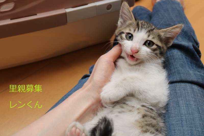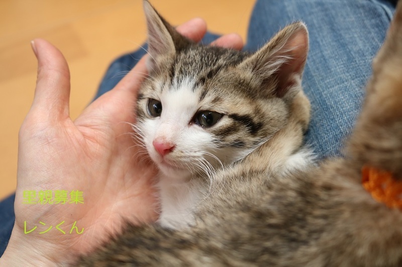 | 特徴(性格など) | キジ白子猫、男の子、仮名:レンくん 推定生後2ヵ月半くらい、体重:970g(5/28現在) 健康診断済み、ブロードライン済み(5/28)、 血液検査、ワクチン接種は、近日(6/3)予定。 トイレしつけ済み。 TNR活動している所に捨てられていました。 人見知りしていますが、おもちゃで遊んだり、徐々に慣れてきています。元気で食欲あります。 6/3、初回三種混合ワクチン接種済み。 6/3、ウイルス検査-エイズ・白血病-ともに陰性。 |