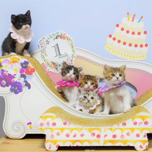 | 特徴(性格など) | ★健康状態について★ 毎日元気いっぱいに遊び 離乳食もたくさん食べて健康状態はとても良好です。 ☆3種ワクチン1回接種済み ☆内外駆虫済み(便検査異常なし) ☆猫エイズ、猫白血病の血液検査は まだ体が小さく採血が負担になるため実施しておりません。 現在の1ヶ月半ほど 体重は900gです。 (誕生日は4月10日くらいです。) ★猫ちゃんの特徴★ おだん5兄弟 ☆さくら君☆ 生後1ヶ月半の男の子です。 ❁性格❁ おしゃべりが大得意な甘えん坊です。 いつもママ~ママ~ お腹すいたよ~ あそびたいでしゅよ~ おひざのりたいでしゅよ~と かわいくアピールしています。 最後まで離乳食を 『じぶんではたべられないでしゅ!』と 粘っていて、、 そんないじらしいところもかわいいさくら君です。 ❁チャームポイント❁ くっきりおしゃれな黒白マスクと さくら色のお鼻とハートのマズルがチャームポイント かわいいカギしっぽです。 ❁その他❁ 通院や爪切りブラッシング、おトイレなど 上手にできます。 とても甘えん坊で好奇心旺盛な性格でなので 猫ちゃんと暮らすのが初めての方 小さなお子さまがいらっしゃるお家でも 仲良く暮らせる猫ちゃんだと思います。 ❁仲良し兄弟と一緒に❁ 兄弟のきび君、くるみちゃん ごまちゃん、みたらしちゃんととても仲良しです。 子猫同士で一緒に成長することで 遊びながらいろいろなことを学びます。 2匹以上で一緒に迎えていただけるお家とご縁がありましたらうれしいです。 ❁インスタグラムをご覧下さい❁ おだん5ちゃんたちの成長の記録ムービーを 保護した日から毎日インスタグラムのストーリーに 投稿しています。 ぜひかわいい5にゃんの動画をご覧ください! @fuuchannel プロフィールのURLからもアクセスできます。 ❁写真の補足❁ 4枚目…きびちゃんと新しいおもちゃで遊んだよ 5枚目…端午の節句のお祝いでしゅ! 6枚目…とっても仲良しなおんだ5兄弟の1ヶ月記念 |