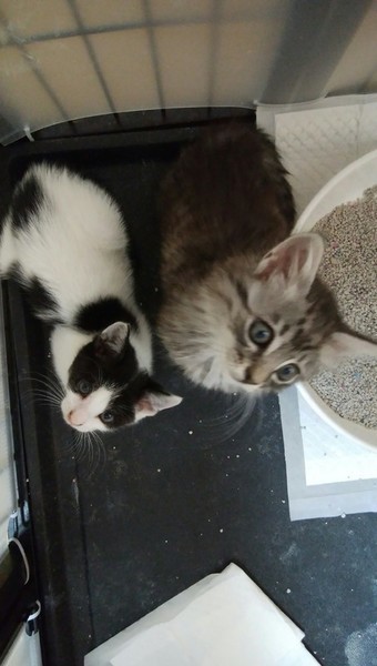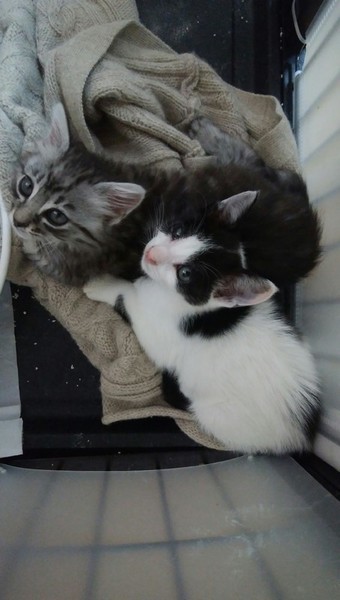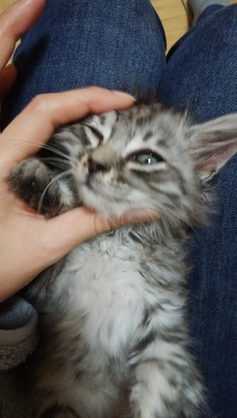 | 特徴(性格など) | 健康状態 グレーキジ長毛の女の子(ふわふわ) 保護した直後は目ヤニや鼻水等の風邪症状があり、クシャミのし過ぎで1度鼻血が出ました。 内服薬等の治療で目は綺麗になり、現在は少しクシャミが、残るのみです 黒ブチ男の子(豆大福) 同じく保護した直後は目やにと鼻水の風邪症状あり、内服薬を服用中です 目の症状があと一息という感じです 2匹共通 猫エイズ(陰性) 猫白血病(陰性) 便検査異常なし 猫3種ワクチン 1回目接種済み ブロードライン済み エイズと白血病の陰性の結果が記入された用紙と、ワクチンの証明書をお渡しします 性格や特徴 ふわふわ(女の子) 少し長毛です。尻尾は真っ直ぐ 手足はサバトラですが、体の毛は先端が少し茶色いです。 とても甘えん坊で、人の眼を見つめて顔をこすりつけてゴロゴロ甘えてきます とても元気で遊び好きでおてんば。仔猫の魅力が詰まったような子です 豆大福(男の子) 頭の前も後ろもハチワレ模様。 体には黒ブチ ハートのマークに見えるブチがあります 手足が長いです 尻尾は黒いですが、先端のみ白 先端1センチくらいだけ、幸運を引っかける鍵しっぽ 背中の毛が短毛の子より少し長いです 身体能力は高いですが、やさしくておっとり |