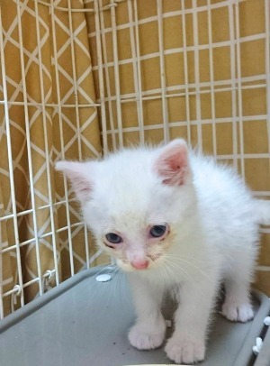 | 特徴(性格など) | ●4月18日生まれ 月齢1.5カ月 軽い風邪をひいていましたがすぐに良くなり、皆元気で順調に育っています 駆虫は7周目の6月初旬に予定 譲渡条件: ・まだ小さいので、お留守番のないお宅 ・60歳以上の方は誠に申し訳ございませんが、ご遠慮ください ・完全室内飼いで、ベランダなどにも出さないこと ・保護場所から1時間以内の場所にお住いの方 ・同棲の方は申し訳ございませんがご遠慮ください ・条件に合った複数の方からお申込みがあった場合は、近隣の方を優先させていただきます ?メロンちゃん 女の子 尻尾はくるん曲がり 全身白で頭の部分にかすかに黒い毛が生えていますが、成長すると消えるかもしれません とてもなつこく、イケイケ女子 ?いちごちゃん 女の子 キジトラ 尻尾はまっすぐで長い こちらもとてもなつこくで、かなりのお転婆さん ごはんをお皿に食べやすいように盛り上げてあげるのですが、取られると思うのか怒ってスプーンに食いついてきます(笑) ?マンゴーくん 男の子 全身白 尻尾はくるん曲がり この子だけ保護したばかりで目がこんなことになっていますが、他のきょうだい同様にすぐに綺麗になると思います 来たばかりで固まりながらも、きょうだいがいないと不安で逃げたい衝動にかられているようす(笑) でも、自由に触らせてくれる素直なおとこですよ ※マンゴーくんは他の子と2匹での譲渡を希望します |