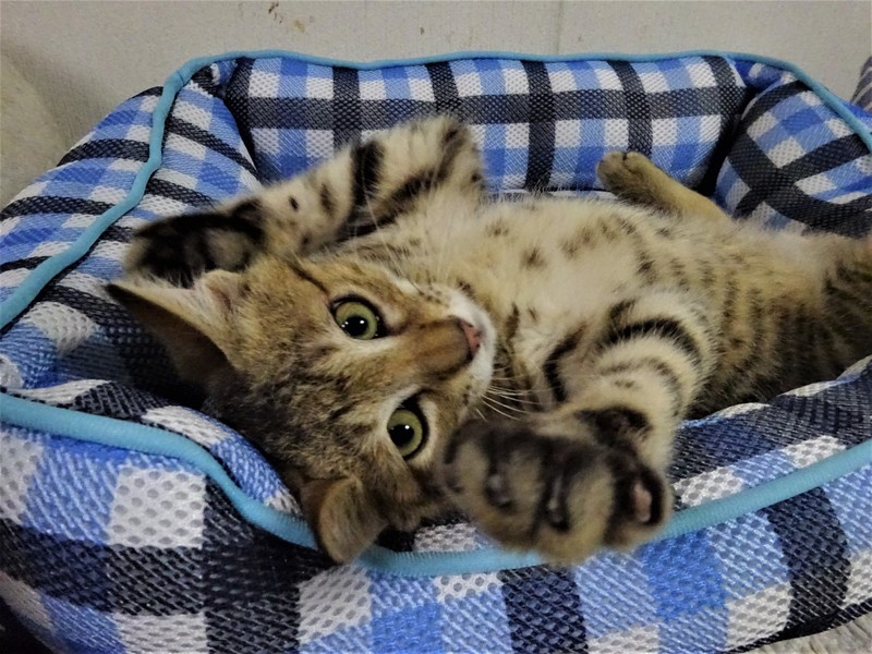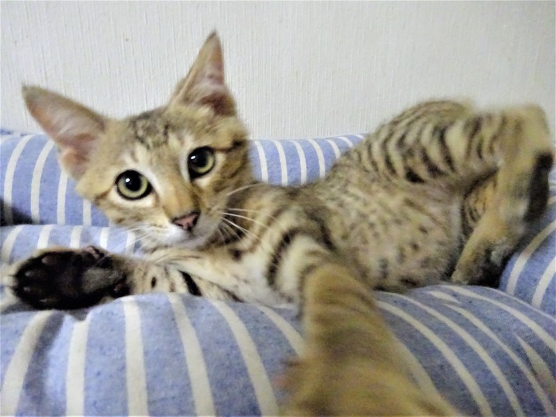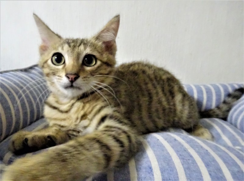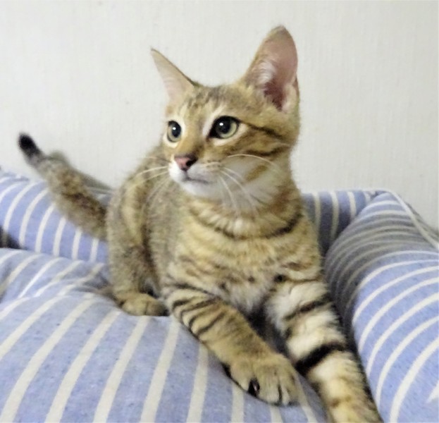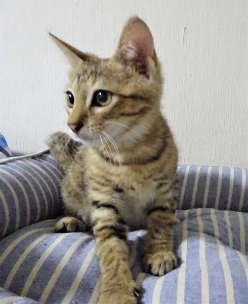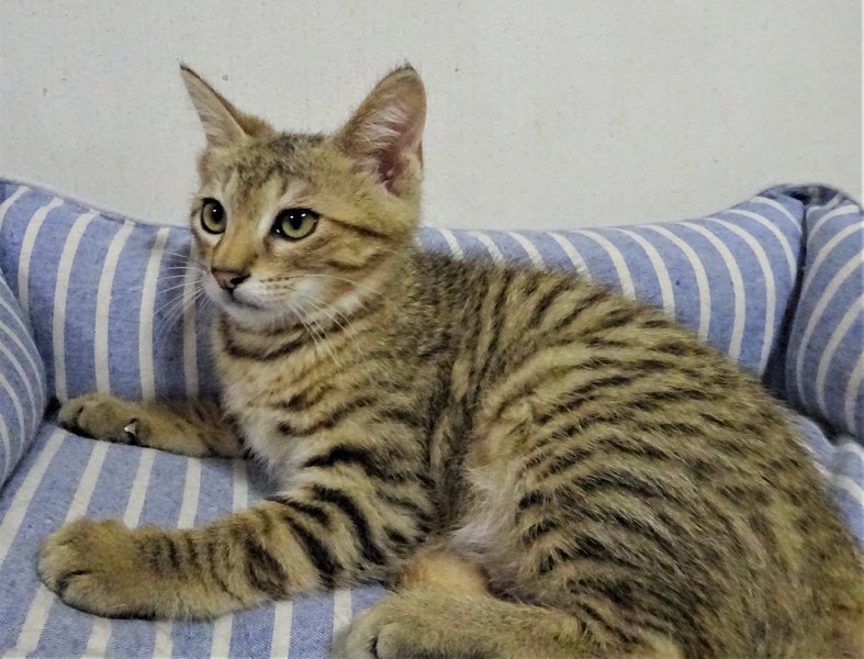 | 特徴(性格など) | 仮名: ピー君(オス) 毛色: 明るめ茶系のキジトラ、尻尾長い 性格: 少しビビリなので、いきなり覗いたりするとビックリしてしまいますが、抱っこすると喉ゴロゴロの甘えん坊に変身します。 大人猫とも子猫ともうまく付き合えるようです。活発でケージ内で一人遊びも激しいですが、プロレスも好きです。 留守の時、 夜寝る時などのために、ケージを使用されると良いと思います。 ノミ取り済 検便済 駆虫済 3種混合ワクチン済 猫エイズ・白血病ウィルス検査はともに陰性です。 |