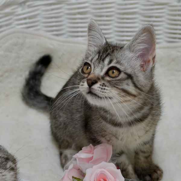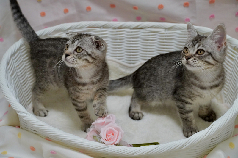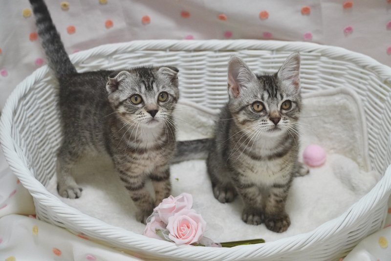 | 特徴(性格など) | 【スコmix!超可愛い甘えんぼ兄弟;シュウくん&ショウくん♪】 シルバーの毛並みに、くっきり入ったブラックが美しい「シルバータビー」のふたり^^ 立ち耳の、アメショのような姿が可愛いショウくんは、 元気いっぱいで、人間のお膝が大好きな超甘えんぼな男の子♪ 垂れ耳の、スコティッシュのような姿が超キュートな垂れ目のシュウくんは、おもちゃで遊ぶことが大好きなおっとり可愛い男の子です^^ とてもとても仲良しな二人で いつも一緒に遊び、 いつもくっついてねんねしています。 あまりに仲良しなので、引き離すのが忍びないため 仲良し2匹一緒でのお迎えをお願い致します^^ 生後2ヶ月半〜3ヶ月くらいになり、 体もしっかりして、ぷくぷくの健康体ですので 2匹一緒にお留守番致しますので、 お留守番時間があるおうちも大丈夫です^^ すっごく人懐っこい子たちですので、 小さなお子様がいるおうちや 猫さんと暮らすのが初めてのおうちも大歓迎です! 子猫はですね、1匹でお迎えされるよりも 仲良し2匹でお迎えされるほうが、子猫どうし勝手に遊んでくれるので、お世話が格段に楽ですよ! トライアル前、正式譲渡後、お迎え後何年経過しても ご心配なことはご相談いただけますし、 丁寧にアドバイスも致しますので、その点はどうぞご安心くださいませ^^ 可愛い可愛い兄弟のこと、どうぞよろしくお願い申し上げます! ※折れ耳の子は、スコティッシュなどに伝わる遺伝子(劣性遺伝子)が入っているため もしかしたら、この先骨軟骨異形成等になってしまう可能性がなきにしもあらずですので (雑種の日本猫さんの血も入っているので、純血種よりは可能性はかなり低くはなります) その点も含め、 ふたりにたくさんの愛情を注いでくださり 健康面でも気を配っていただけるご家族からのお問い合わせをお待ち致しております^^ *** 健康状態 *** 良好です!子猫らしく、元気い〜〜〜っぱい! ●3種ワクチン1回目接種済み ●ノミダニ駆除済み ●お腹の虫の駆虫済み ●検便2回 ( ー ) ●パルボ検査済み ●血液検査済み ●ウイルス検査済み 猫エイズ( ー ) 猫白血病( ー ) ●爪切り済み ●お耳掃除済み ●トイレのしつけ済み ※現時点で必要な医療・ケアはすべて完了しておりますので ご安心してお迎えいただけます^^ ※医療費の一部ご協力金として、ワクチン1回目済みの子猫用8000円の2匹分をお願い致します。 上記医療をご自身でされる場合の半額以下になりますので、ご理解いただけますと幸いです。 |