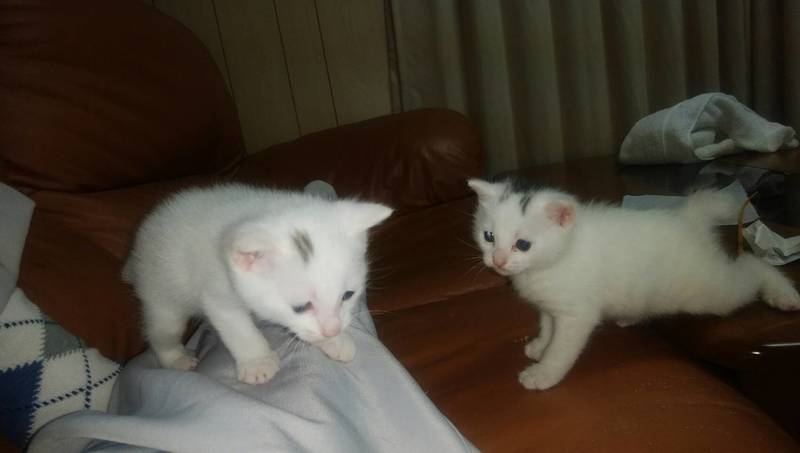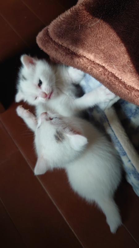 | 特徴(性格など) | 白頭に少し黒の子猫2匹です。 まだ、よちよちあるきですが人懐っこくとってもかわいいです。 |