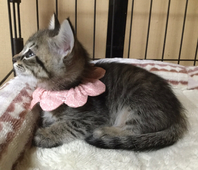 | 特徴(性格など) | ☆☆☆ご希望の方は、以下のアンケートフォームにご記入の上、送信してください☆☆☆ ねこ親希望アンケート→ http://chibawan.net/contactform_cat 【猫No.】3050 【愛称】はるな 【性別】メス 【年齢】推定6週齢(20/06/03現在)(20/04頃生) 【毛色】キジトラ・真っ直ぐの長しっぽ 【体重】720g(20/06/03現在) 【状態】ノミダニ駆除済、駆虫済(検便所見なし)、トイレ躾済、ワクチン1回接種済(20/06/01)、血液検査済(エイズ−・白血病−) 【保護場所】野田市 【日記】Instagram kemikemi1206 http://instagram.com/kemikemi1206 【経緯】千葉県動物愛護センターより引き出しました。 【性格】つぶらな瞳がキュートなキジトラの女の子です。 兄妹の中で一番小さく生まれたのですが、果敢に身体の大きな兄妹にニャンプロを仕掛ける勇敢な子です。 好奇心も旺盛で、初めての場所に足を踏み入れる時も一番乗りです。 将来は 活発なお転婆さんに育つのではないかと思われます。 へその緒がついた頃から人の手で育てられているため、人馴れ抜群です。 家族を見かけると後追いしたり、ニャーニャー鳴いて「抱っこして」とアピールしてきます。 人の顔を見分けるので、知らない人には初めはシャーとご挨拶するかもしれませんが、じきに馴れると思います。 預かり宅の先住猫や犬に興味津々ですが、まだ甘えに行くのは怖いようです。 先住猫や犬とは、相性次第かと思います。 先住猫(犬)がいる場合、子猫がわちゃわちゃしていても気にしないおおらかでマイペースな性格だとベストです。 子猫の活動量は想像以上ですので、繊細な性格の猫(犬)さんですと、子猫の存在自体がストレスになってしまうことがありますので、ご注意下さい。 生まれた時からずっと一緒に育ってきた、兄妹のいぶきが良き遊び相手となっておりますので、いぶきと一緒に迎えて下さるご家庭を希望します。 兄妹一緒であればお留守番があっても寂しくないと思います。 育ち盛りのはるなの日々の様子や、育児日記の悲喜こもごもをインスタグラムにアップしています。 子猫との生活がどんなものか、また、はるなの性格なども垣間見えるかと思いますので、ぜひご覧下さい。 【補足事項】お届けは、不妊手術・マイクロチップ装着などの医療処置が全て終わってからを予定しています。(6月28日に手術を受ける予定です) 【その他】完全室内飼育で終生愛情を持ってはるなと暮らしていただける方、定期的なワクチン接種や、その時々において必要な医療処置等の健康管理を約束していただける方からのお問い合わせをお待ちしております。 可愛いはるなに会いに、預かり宅までいらして下さい! ※ 大変申し訳ないのですが、猫が幼齢のため、58歳以上の方からのお申し込みはお断りすることがございます。 |