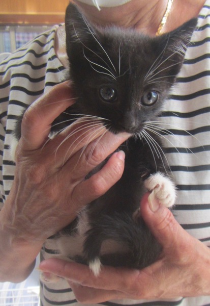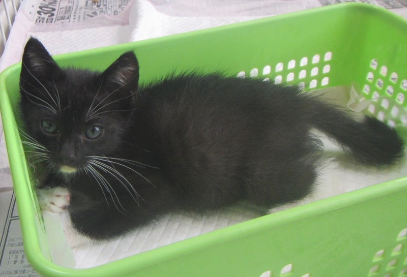 | 特徴(性格など) | 黒猫ちゃんの白ソックス男の子です。まだ700gほどですが賢くて愛情深い子です。とても甘えっ子で犬にも甘えます。写真ではシッポの先が曲がってるように見えますが、まっすぐです。まだ手乗りサイズながら賢く丈夫で飼いやすい子だと思います。 | ||