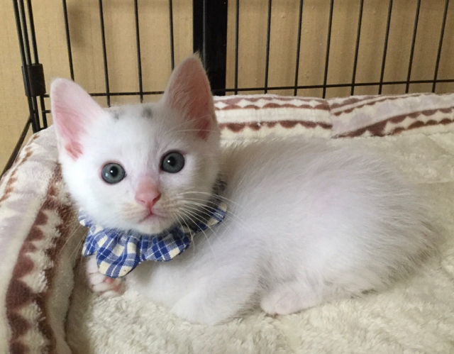 | 特徴(性格など) | ☆☆☆ご希望の方は、以下のアンケートフォームにご記入の上、送信してください☆☆☆ ねこ親希望アンケート→ http://chibawan.net/contactform_cat 【猫No.】3057 【愛称】ふうが 【性別】オス 【年齢】推定7週齢(20/06/03現在)(20/04/頃生) 【毛色】白灰・真っ直ぐの長しっぽ 【体重】723g(20/06/03現在) 【状態】ノミダニ駆除済、駆虫済(検便所見なし)、トイレ躾済、ワクチン1回接種済(20/06/01)、血液検査済(エイズ−・白血病−) 【保護場所】野田市 【日記】Instagram @kemikemi1206 http://instagram.com/kemikemi1206 【経緯】千葉県動物愛護センターより引き出しました。 【性格】元気で活発、遊び好きのやんちゃな男の子です。 兄妹とのかけっこやニャンプロが大好きで息を切らせて遊んでいます。 人が大好きで、疲れるとお膝に登ってきてコテっと眠ってしまいます。 その姿はとても愛らしいです。 預かり宅の先住猫や犬に興味津々ですが、まだ自分から近づいていくのは怖いようで、兄妹の影に隠れたりしています。最近では、犬が寝ている時は尻尾で遊ぶようになってきました。 先住猫や犬とは、相性次第かと思います。 先住猫(犬)がいる場合、子猫がわちゃわちゃしていても気にしないおおらかでマイペースな性格だとベストです。 子猫の活動量は想像以上ですので、繊細な性格の猫(犬)さんですと、子猫の存在自体がストレスになってしまうことがありますのでご注意下さい。 生まれた時からずっと一緒に育ってきた、兄弟のたいがが良き遊び相手となっておりますので、たいがと一緒に迎えて下さるご家庭を希望します。 兄弟一緒であれば、お留守番があっても寂しくないと思います。 育ち盛りのふうがの日々の様子や、育児日記の悲喜こもごもなどをインスタグラムにアップしています。 子猫との生活がどんなものか、また、ふうがの性格なども垣間見えるかと思いますので、ぜひご覧下さい。 【補足事項】お届けは、去勢手術・マイクロチップ装着などの医療処置が全て終わってからを予定しています。(6月28日に手術を受ける予定です) 【その他】完全室内飼育で終生愛情を持ってふうがと暮らしていただける方、定期的なワクチン接種や、その時々において必要な医療処置等の健康管理を約束していただける方からのお問い合わせをお待ちしております。 可愛いふうがに会いに、預かり宅までいらして下さい! ※ 大変申し訳ないのですが、猫が幼齢のため、58歳以上の方からのお申し込みはお断りすることがございます。 |