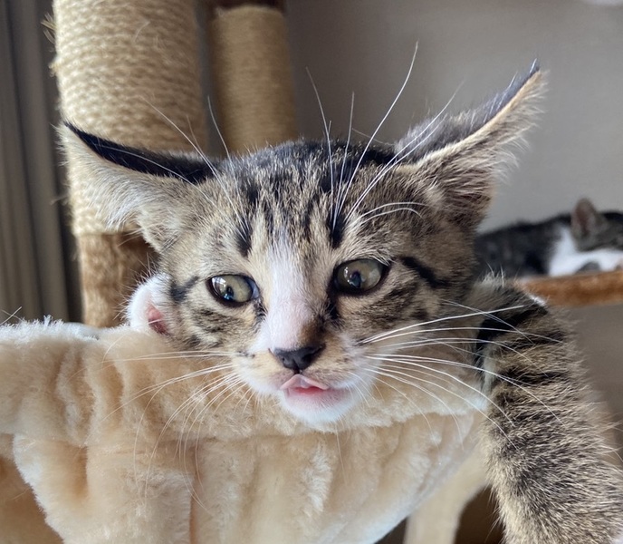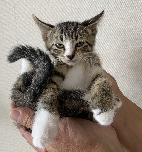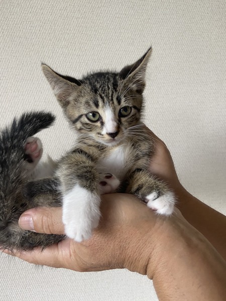 | 里親募集する理由 | 民家の多い住宅街で餌をもらっていたお母さんが連れてきたそうです。3兄弟で他の二匹は里親様が決まりました。母猫は避妊手術後 以前のようにご飯を食べに来ているそうです。 | ||