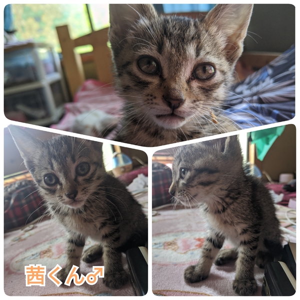 | 特徴(性格など) | 綺麗なキジトラ柄です。 人が好きでゴロゴロ喉を鳴らして 甘えに来たり膝の上で寝ます☆ |