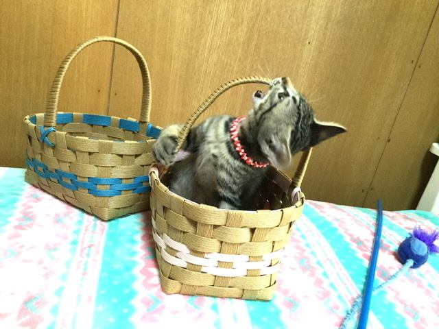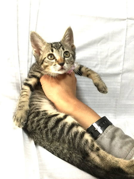 | 特徴(性格など) | 生後2ヵ月のキジトラ 額のM字がチャームポイント しっぽはスラリ長め 我が家に来てから一度も体調を崩すことなく育ちました 現在体重1kgを超えたところで、1番可愛い時期です ミルクの時期より人の手で育てて来ましたので、人間大好きのゴロゴロニャンコです 双子姉妹のららちゃんと毎日楽しく遊んでいますが、さみしくなるとお膝に登って来ます 双子姉妹のららちゃんと一緒にいけるお家を探しています |