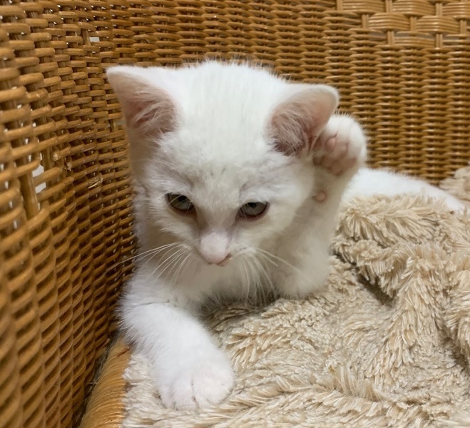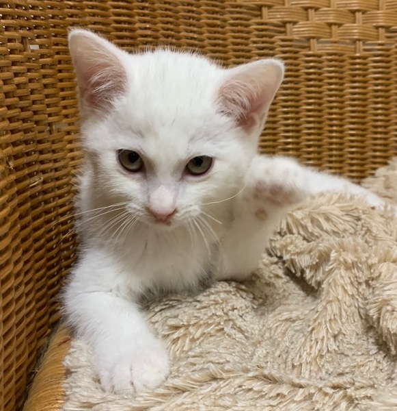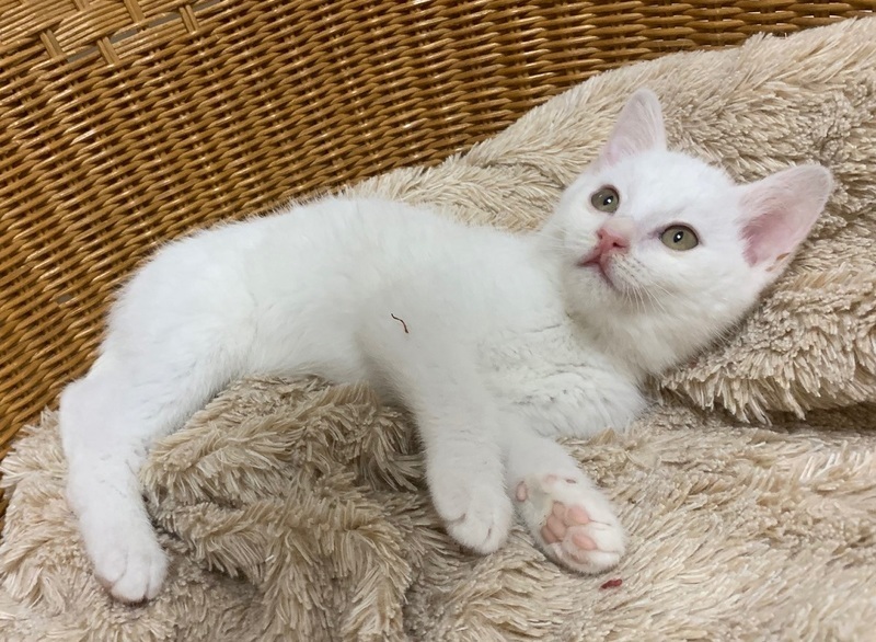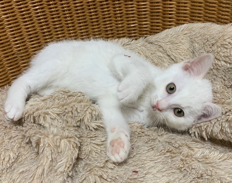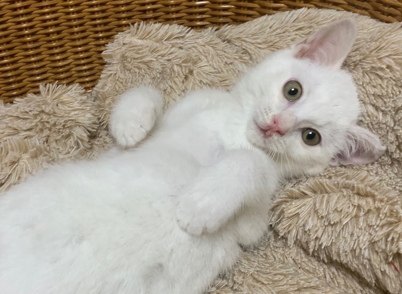 | 特徴(性格など) | 【仮名】しらたまくん 【性格】シロクマの子供みたいなしらたまくん♪ 超天然系のちびちゃんです♪ 保護時、他の兄妹は警戒してたのですが 一人だけご飯食べて寝てました(笑) 駆け回ってご飯食べて寝ての行動の全てが自由すぎるんです(笑) でも撫でるとすぐにゴロゴロいっちゃいますよ(笑) 猫風邪はだいぶ良くなってきていて 鼻のアタマがまだちょっとカサブタが残ってますが 元気いっぱいなのでご安心下さい♪ 最近のマイブームはベッドハート 他の大人猫もおかまいなしで いっつも大文字になって寝てます(笑) ちゃたまくんやくろたまくんと 仲良しでいっつも一緒に遊んでます♪ お留守番時間がないor短い里親様を希望します。 同世代or兄弟一緒にお迎え頂けると嬉しいです♪ |