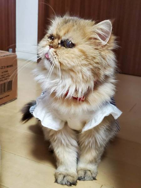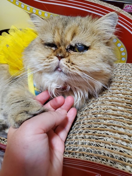 | 特徴(性格など) | 2017.2.14生まれ(推定) 毛色:茶 長毛 とても甘えん坊な性格で顔をスリスリこすりつけてきて、慣れるとゴロンゴロン転がって甘えてきます。 いつもかわいい舌が少し出ていて、人間の側にもすぐきてくれてとても癒されます。 甘えたい時、お腹が空いたときは可愛い声でなきます。 のんびりしたマイペースな子なので、預かり宅の家猫とも問題なく過ごしています。 チュールが大好きで、チュールをあげながらだと爪切りはできます。 抱っこは苦手です。 劣悪なブリーダー崩壊現場からレスキューされました。 右目は失明しています。 左目は見えていますが、上瞼欠損で毛が目に入りやすくなっているので、毛が伸びたらカットをするケアが必要です。 マラセチアで皮膚の状態が悪かったのですがシャンプー、投薬で現在はよくなりましたが、定期的なシャンプーは必要だと思います。 ペルシャ猫なのでブラッシングなどきちんとケアが必要です。 シャンプーは何度もしているので慣れているので、ネットにいれなくてもできます。 愛子のことを丸ごと受け止めてくれる方をお待ちしております。 |