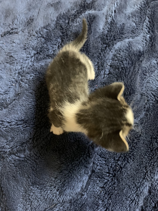 | 特徴(性格など) | 白黒のキジ柄 兄弟より少し小さいけどたくさん母乳飲んで元気な女の子です |