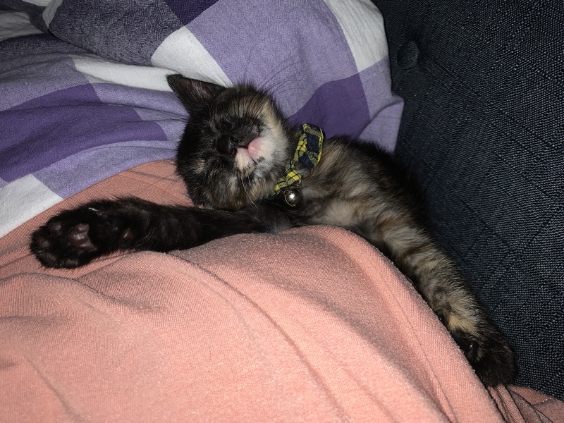 | 特徴(性格など) | 黒が多いサビ猫です よくひっくり返り、お腹には茶色がたくさんあります 人懐っこく、近付くだけでゴロゴロ言います 気はキツくなく優しいですが、遊びたい年頃ですので他の猫は追いかけたりしていました 猫に対してはかなりじゃれ付きに行きます 好奇心旺盛ですが少し怖がりなのか初めて見るものは驚きやすいです ヤンチャで元気いっぱいです 寝る時は側によってきます 少しどんくさいです 寂しいと鳴きますが、声はそこまで大きくありません 姿が見えなくなると不安になるようです |