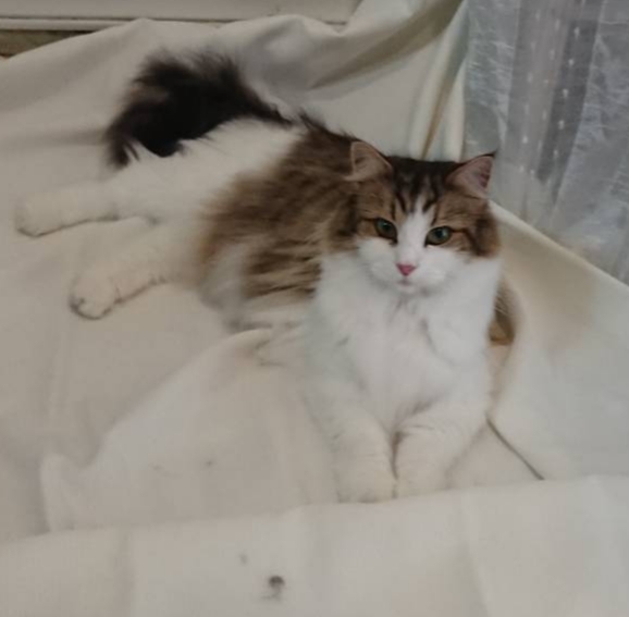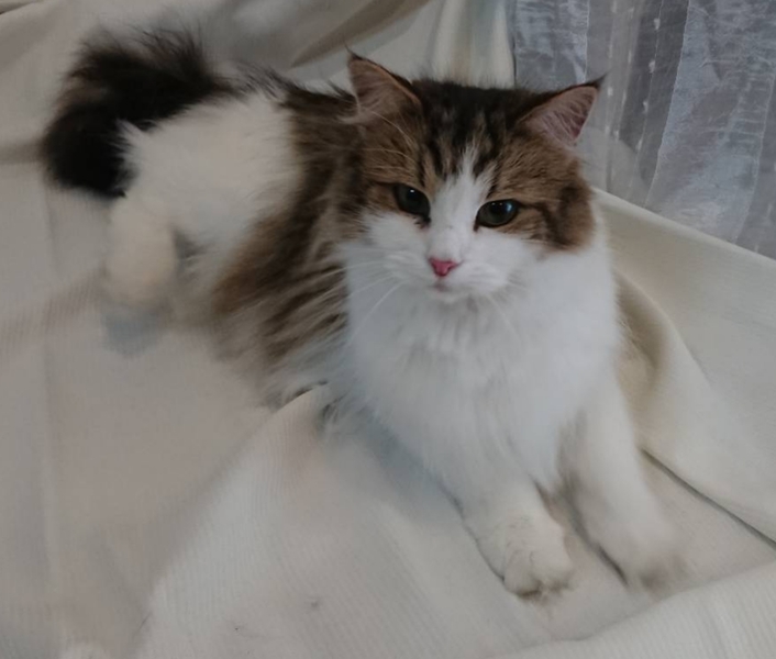 | 特徴(性格など) | 色:ブラウンマッカレルタビー&ホワイト 体重:3㎏~3,5㎏ぐらいです。 トイレ:完璧です。 性格:とてもフレンドリーで美猫です。甘えたさんで人によく甘えてくれます。とても可愛い子です。 |
