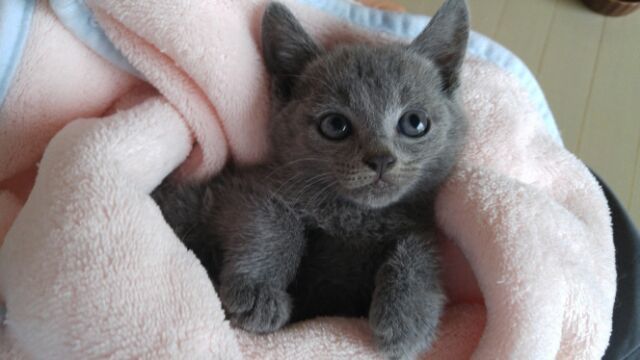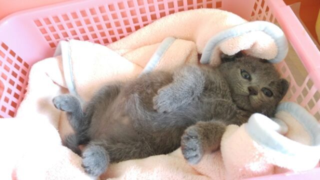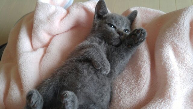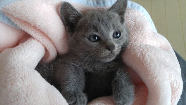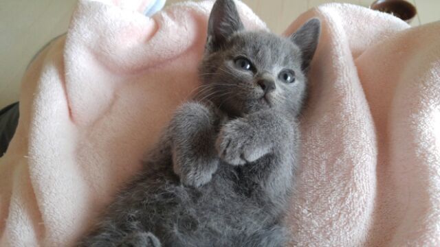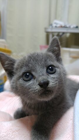 | 特徴(性格など) | 生後1.5ヶ月くらい。グレーの毛並みがとてもキレイな女の子です。しっぽはピーンと長くてまっすぐで、肉球は可愛いあずき色です。 まだ完全に人馴れはしていませんが、保護2日目でゴロゴロいいだしたので馴れるのも早そうです。 性格など分かり次第書き足していきたいと思います。 猫エイズ(-) 猫白血病(-) ノミ.ダニ駆虫済み(レボリューション塗布済み) ワクチンは時期が来たら接種予定です 検便も検査予定です |