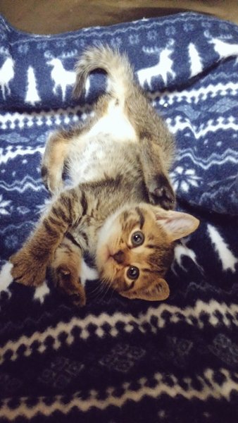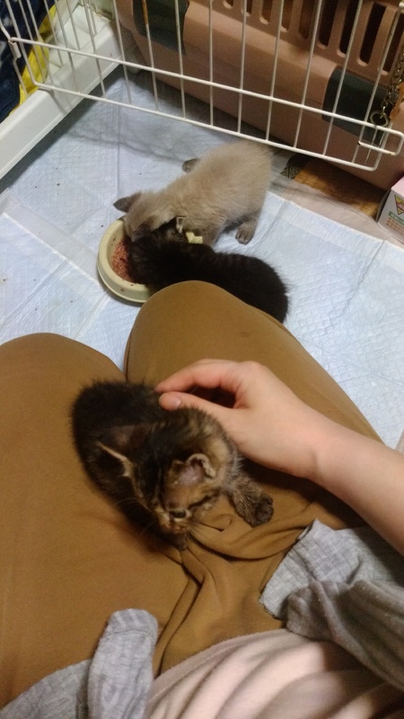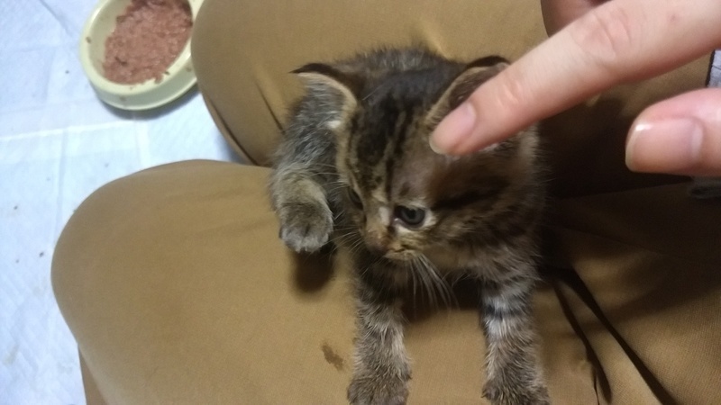 | 特徴(性格など) | 【見た目】 キジトラの女の子です。 明るい色が可愛い子です。 【性格】 兄弟の仲で一番甘えん坊。 数日前まで外で暮らしていたとは思えない、 人に対して警戒心が全くありません。 ご飯を食べたら、人のお膝によじ登って甘えてきます。 そしてそのまま動画のように、寝てしまいます(笑) とっても甘えん坊で、物怖じしない天真爛漫な子です。 ご飯もおもちゃも大好き! 【健康状態】 獣医での健康診断済み。 異常はなしでした。 ノミダニ駆除済み。 ただ、やはり栄養が足りなかったのか少し痩せています。 今は子猫らしく太らせている最中です。 |