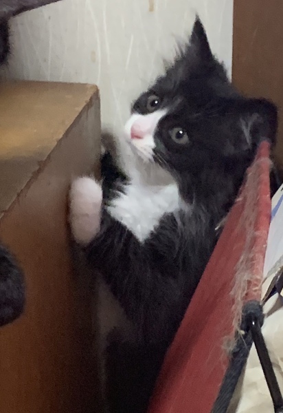 | 特徴(性格など) | 黒白長毛の女の子です(母が黒白、父が洋猫) 人を怖がらず、好奇心旺盛で賢い子です。よく食べ、よく寝て、よく遊ぶ! 元気いっぱいな子です。 |