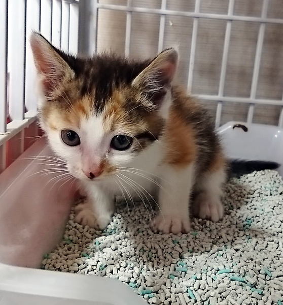 | 特徴(性格など) | 三毛の元気な女の子。 現在、別途で募集中のチャトラ猫ちゃんと一緒に生まれました。 チャトラ猫ちゃんと一緒に遊んだり、元気いっぱいな子猫です。 1匹でももちろん可能ですが、兄妹一緒に引き取ってくださるかた、大歓迎です♪ |