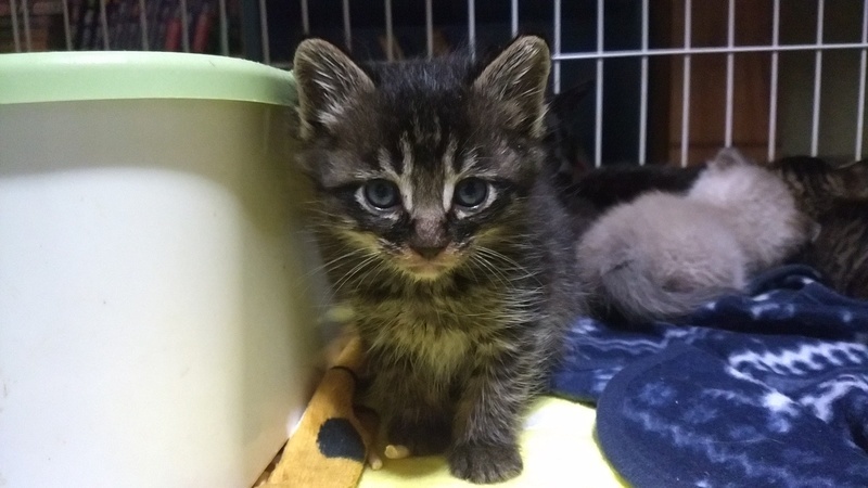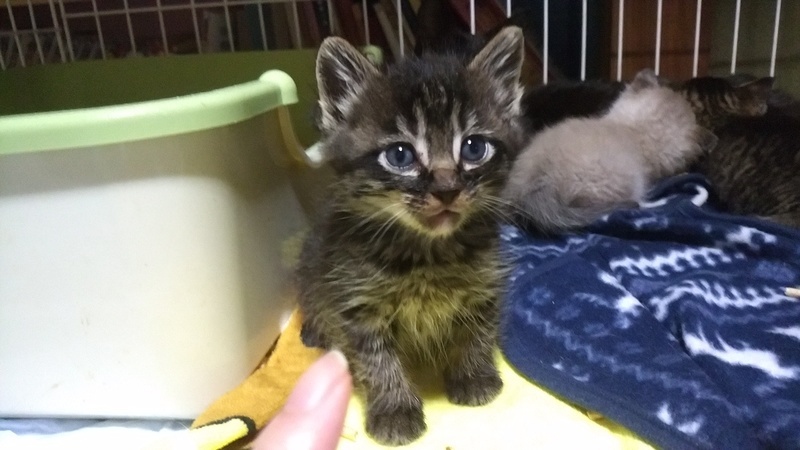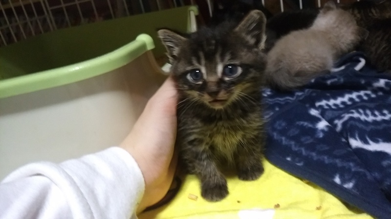 | 特徴(性格など) | 半長毛の黒っぽいキジトラちゃんです。 洋猫ミックスらしく、毛が少し長めでほわほわです。 おっとりしていて、癒し系です。 兄弟に比べてこの子はのんびりゆっくり。 「みんなどこいったの?」ときょとんとしています。 そんなマイペースなフワキジちゃんですが、 撫でてあげると気持ちよさそうにしっぽをピーンと立ててくれます。 だっこしても大人しくて、とっても可愛い子です。 人も猫もOK! 獣医での健康診断済み。 異常はなしでした。 ノミダニ駆除済み。 |
