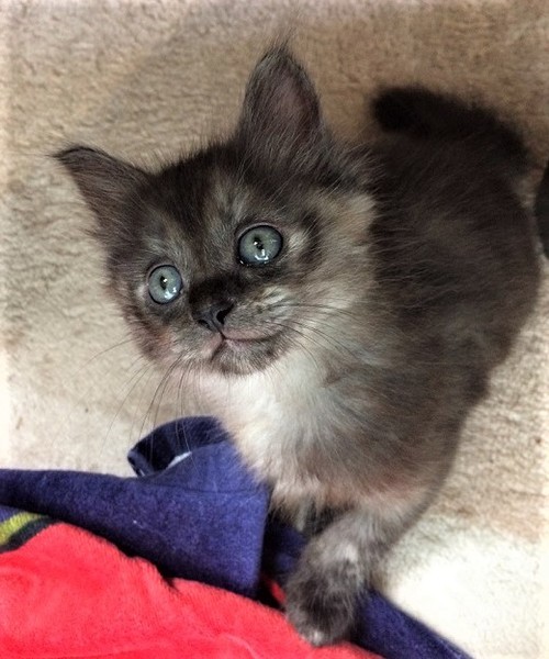 | 特徴(性格など) | 【猫の仮名】 ソックス 【毛色・柄】 グレー(担当者 桂) グレーとこげ茶色の中間のような不思議な色合い。 母猫が珍しいこげ茶一色の綺麗な猫さんなので、その血を引いています。 やや長毛で柔らかい毛質のため、ふわぁっとした印象が、とても愛らしいです♡ 保護主宅で生まれていますので、人慣れは抜群です。 元気いっぱい!食いしん坊のおてんばさんで、弟のふうちゃんと元気に遊んでいます! |