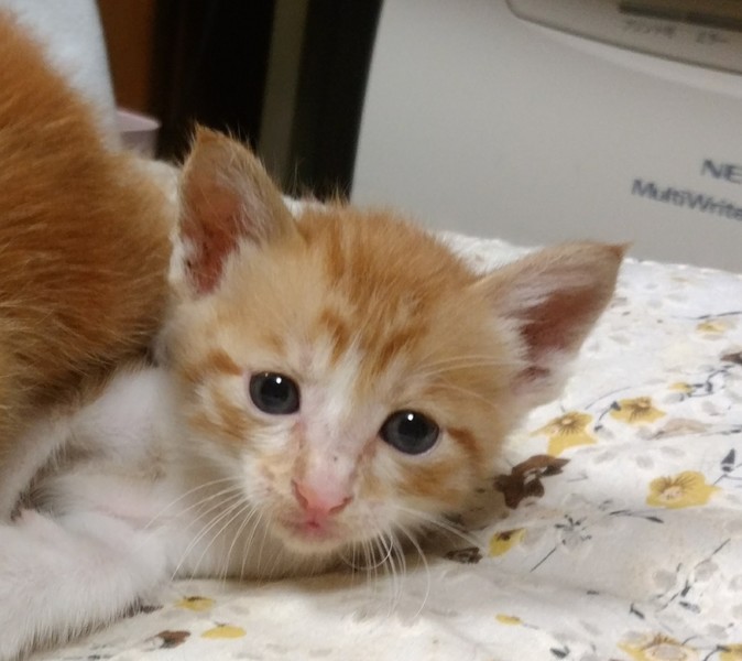 | 特徴(性格など) | 【見た目】 薄い茶白の男の子です。 尻尾は短いです。 【性格】 甘えん坊で、女子軍団よりちょっとぽやっとしています。 保護当初は怯えていましたが、すぐに慣れてゴロゴロスリスリと甘えてくれました。 人がそばにいるだけで喉を鳴らす可愛い子です。 |