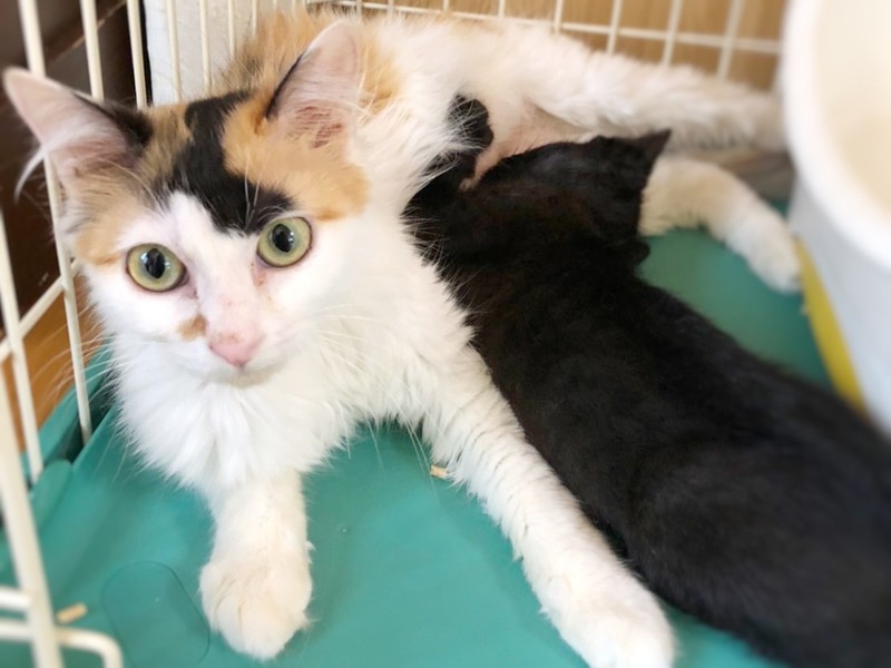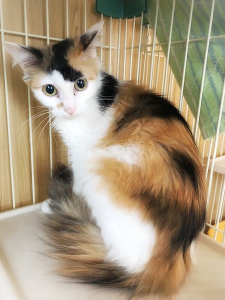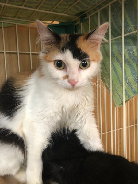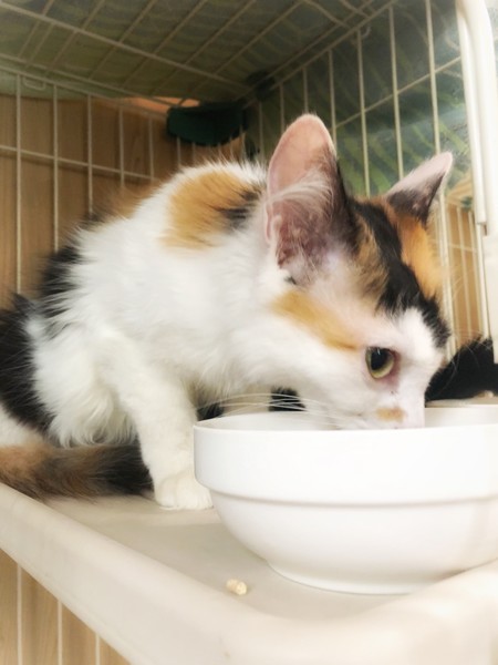 | 特徴(性格など) | まだ人にはシャーシャーとは言いますが機嫌がいいと触る事もできます。 気に入らないと噛もうとする時もあります。 人慣れしてくれるようにブラッシングしながらコミニケーションをとってます。 甘えたさんになる時もあるので時間をかけながらご家族に迎えてあげてほしいです。 子供は生後3ヶ月ぐらいになっていますがまだおっぱいを欲しいがるので飲ませたり、グルーミングしたり愛情を注いでくれる優しいお母さん猫です |