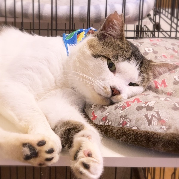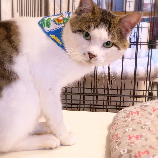 | 特徴(性格など) | 大きな顔の中に小さいグリーンの目がとっても綺麗なんです。 体は大きいけれど、とっても温厚そして甘ったれな男の子です。 まだ保護して日が浅いので、遊び方がよくわかっていません。 そんな幸太郎くんを家族の一員として可愛がってくださるご家族を探しています。 |