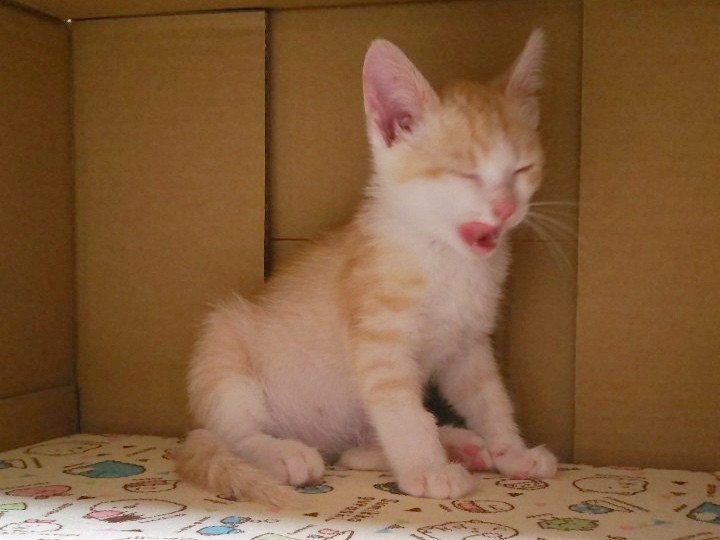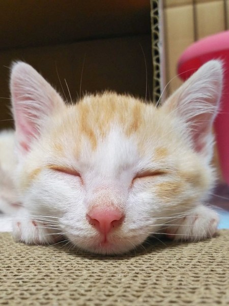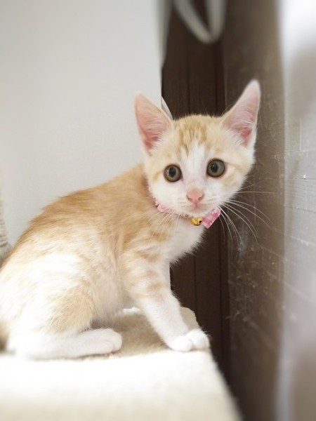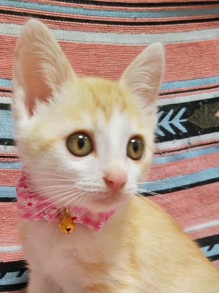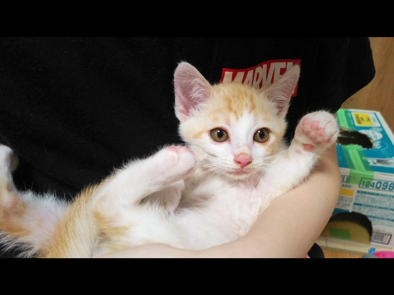 | 特徴(性格など) | かまぼこ君とは、兄弟です。 6/10現在体重は850g。 穏やかで優しい性格をしています。 とっても可愛い顔立ち、甘えたさんですぐゴロゴロ言います。 かまぼこくんと、毎日元気に遊んでいます。 カリカリのエサやウエットフードを食べ元気に過ごしています。 耳に真菌があり現在治療中です。 薬が効いて少し赤みはまだありますが治ってきています。 |