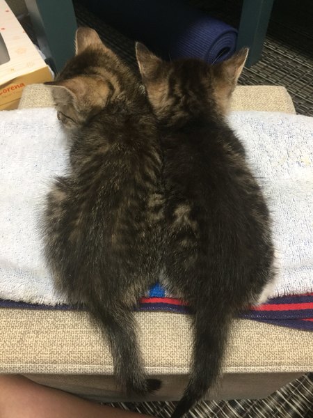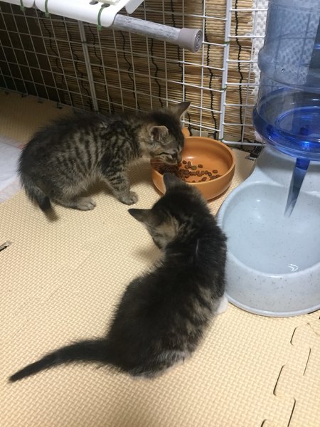 | 特徴(性格など) | キジトラ(体大きい方) キジシロ(体小さい方) どちらもしっぽまっすぐのきれいな柄の子です |