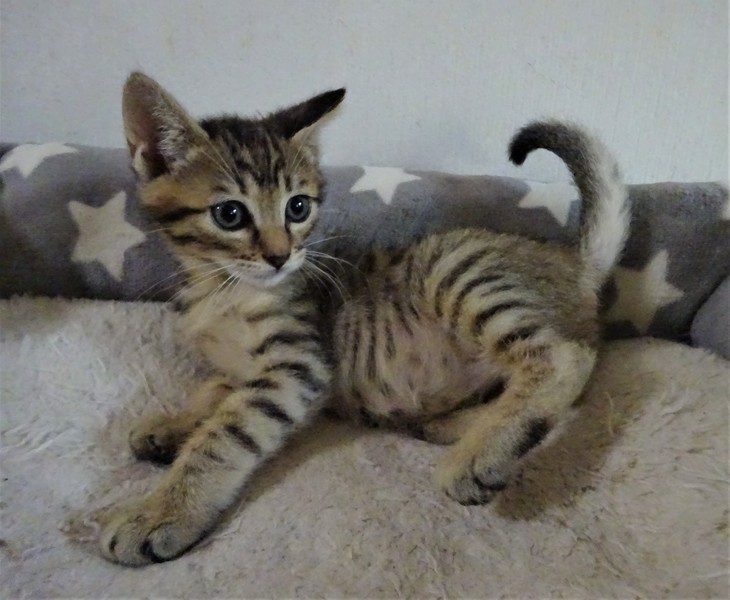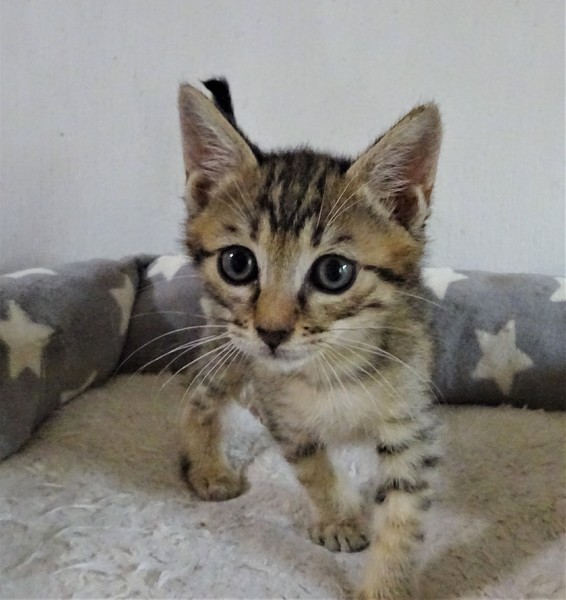 | 特徴(性格など) | 仮名: 麦くん(オス) 毛色: 明るめのキジトラ、尻尾長い 性格: 天真爛漫。生後5日位からミルクで育てているので、人に対して攻撃することもなく、誰にでも懐いてきます。 今は好奇心旺盛な時なので、抱っこしてもじっとしていませんが、抱っこ好き、遊び好きです。 兄妹と一緒に育っているので、猫社会の学習も出来ているようです。 まだ小さいので、暫くは留守番時間の短いお家で見守ってください。ケージに慣れていますので、留守の時などケージを使用されると安心出来ると思います。 |